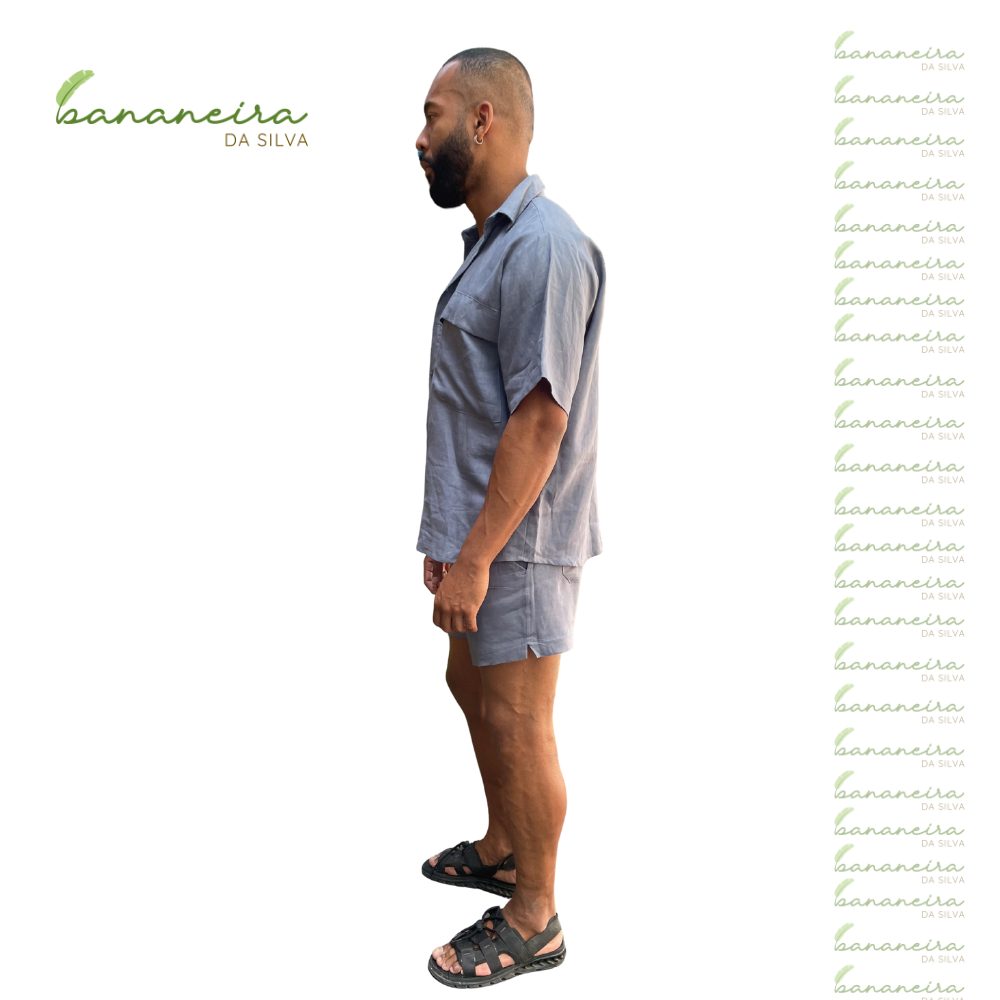 Shorts Baobá, modelo com pernas retas e abertura lateral, bolsos faca nas laterais e bolsos chapados no traseiro.Cós encapado com elástico. Peça contém 2 bolsos faca frontais, 2 bolsos traseiros e elástico encapado na cintura.