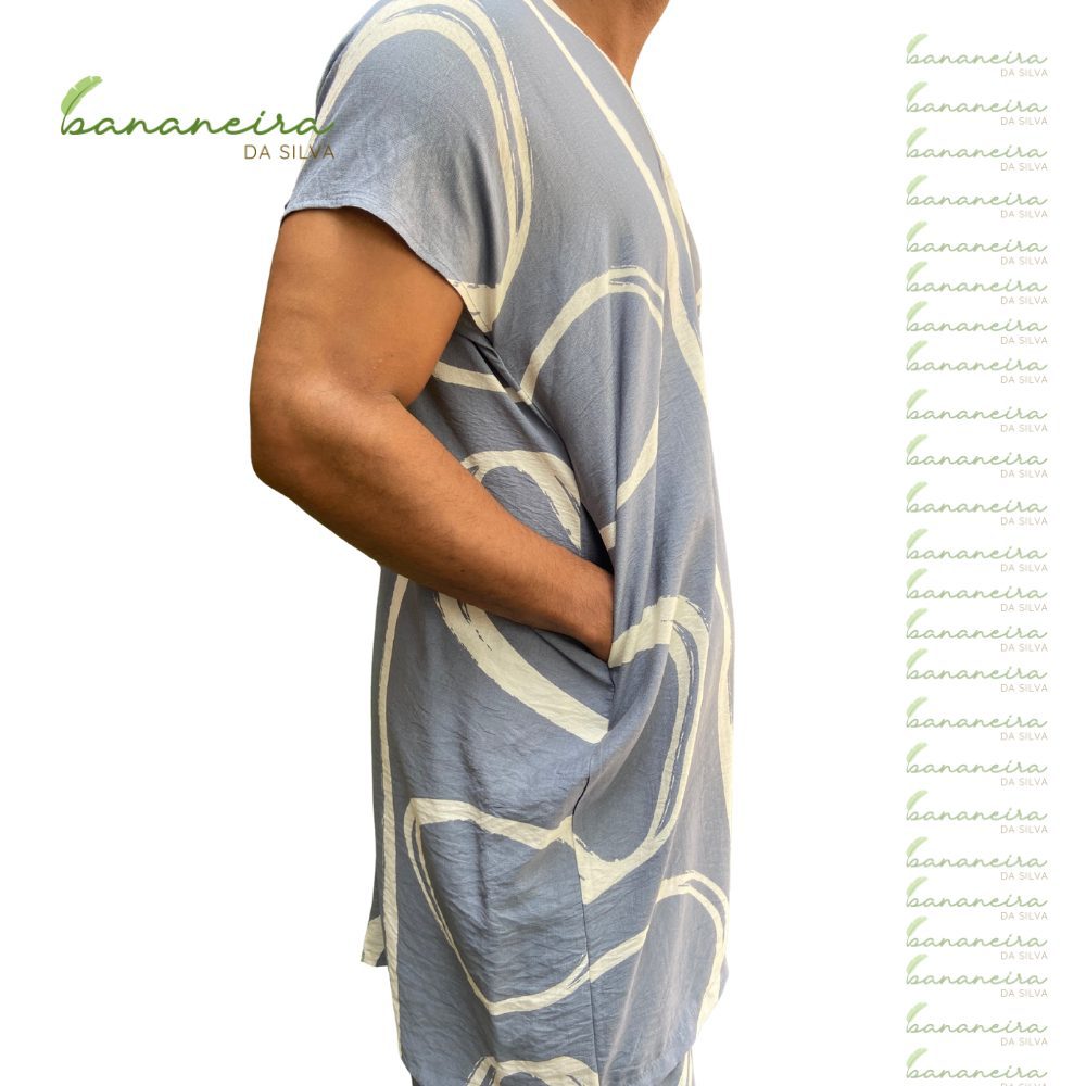 Descrição do produto: Vestido Diamante, amplo com bolsos nas laterais, decote V e prega frontal. Comprimento frente mais curto do que a costa.