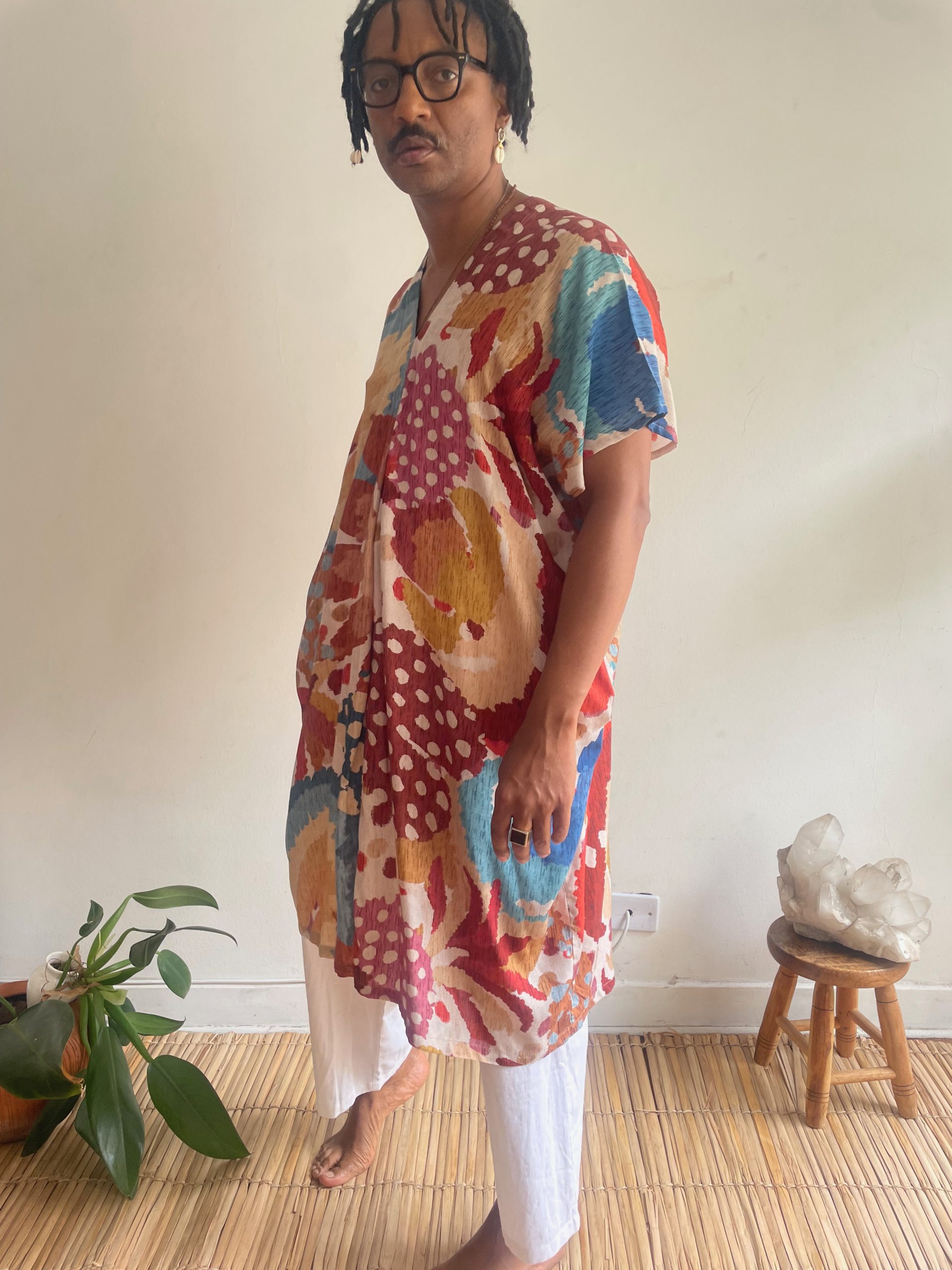 Descrição do produto: Vestido Diamante, decote V . Contém um bolso em cada lateral e a frente é ligeiramente mais curta que as costas.